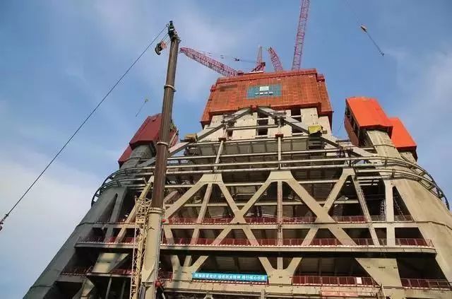 2015年10月27日,巨柱及外框全部施工安装完成,钢结构施工冲出地面;