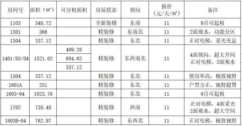 租金报价:7.9元-9.5元