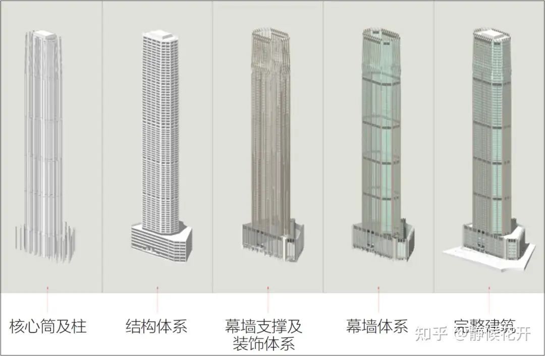 国贸三期主塔楼主体结构为筒中筒结构,即外部的型钢混凝土框架筒体与内部的型钢混凝土支撑核心筒体的组合。抗震等级8级,设计难度和施工难度为世界超高层建筑结构所罕见。