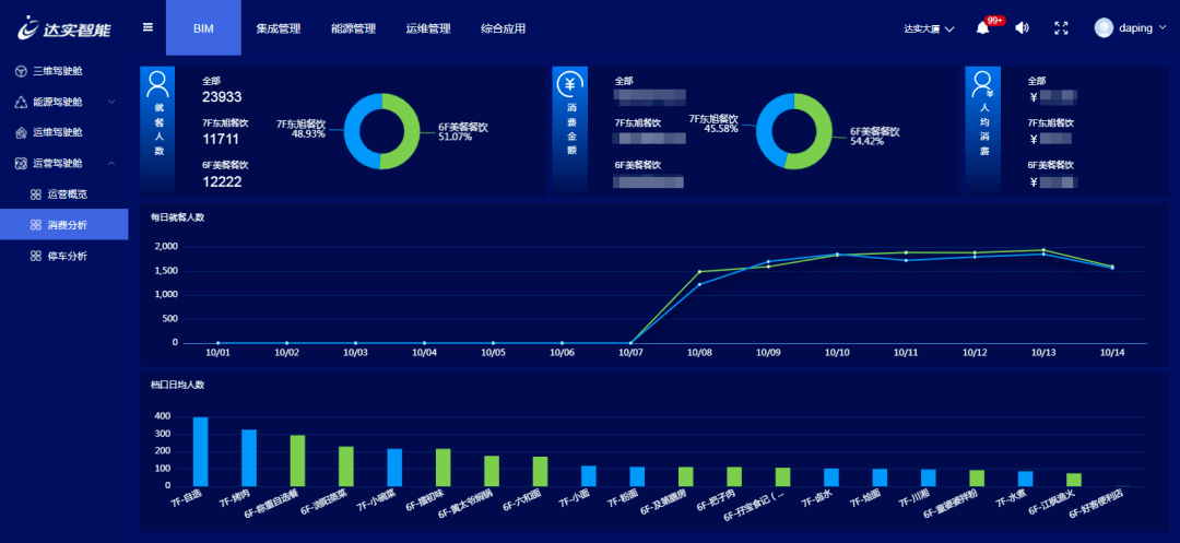 平台通过大数据分析每日菜式的消费金额、就餐人数,就餐者的喜好等;各项数据公开透明地提供给大厦餐厅承包商查看。