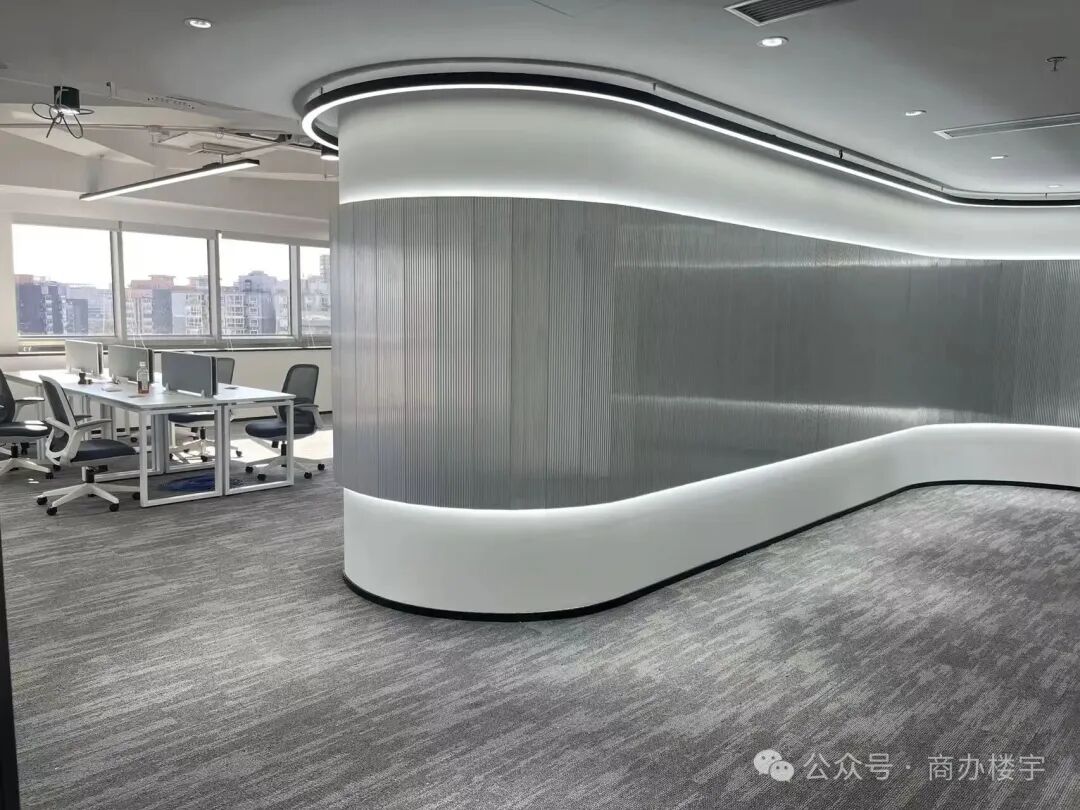 A:3.4米属于写字楼优质层高标准,去除吊顶和地面铺设后,净空高度依旧充足,完全不会有压抑感,不管是普通办公桌椅还是定制高柜、隔断,都能轻松适配,办公空间开阔通透。