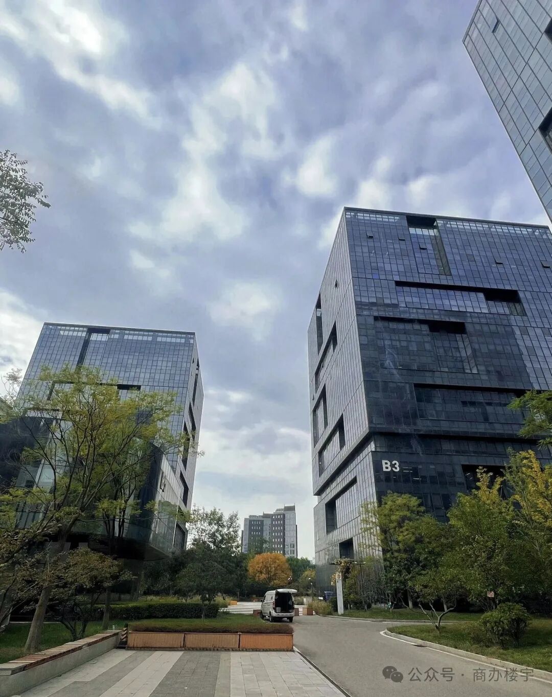 - **建筑类型**:由8栋办公楼建筑围合而成,包括4栋点式和2栋板式建筑。