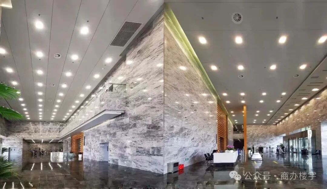建筑采用无柱设计,环形挑空大堂面积达4416平方米,首层厅堂楼高12米,营造奢华空间感。这种设计提供了灵活的组合方式与丰富的应用场景,满足多样化办公需求。