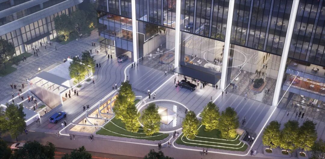 项目以高标准打造绿色建筑,已获得**绿色建筑三星、LEED金级、WELL金级**等多项认证。其核心优势之一是**站城一体**设计,地下部分与**地铁1号线、10号线国贸站**直接连通,并通过地下连廊串联CBD商圈。