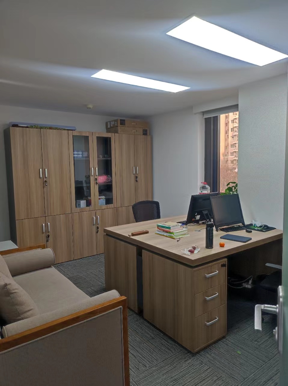 7:【房屋情况】 遗留精装修,可随意改造,两个免费停车位,两部电梯,员工食堂,24小时空调,一个老板间,副总办公室,财务室,洽谈室,会议室,储物间招商电话:13811119290